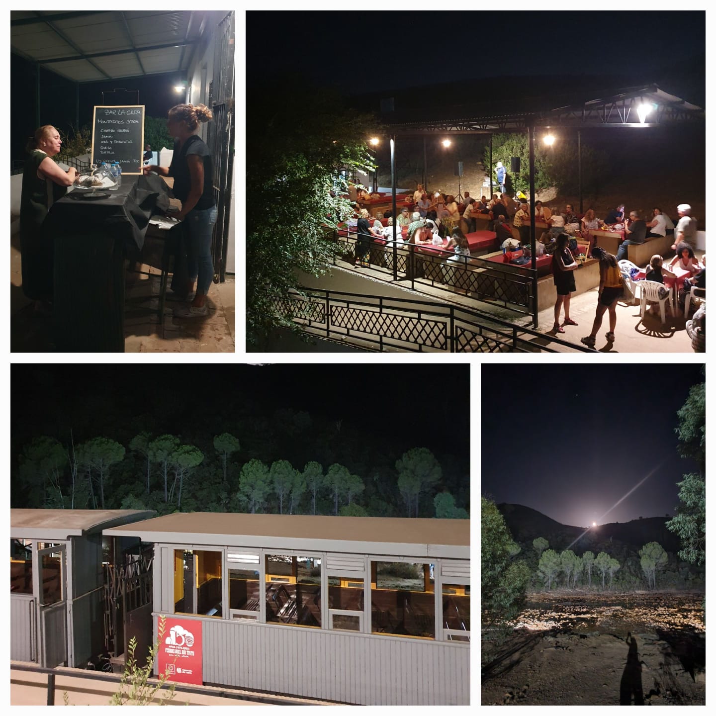 Später, nachdem wir am Zielbahnhof angekommen waren, konnten wir aussteigen und das selbst mitgebrachte Pick Nick geniessen. Wir setzten uns ganz nahe zum Fluss, doch die meisten Besucher gingen zu den gedeckten Tischen, wo es Geselligkeit nach spanischer Art, Musik und Gesang gab. Langsam konnten wir den Aufgang des Vollmondes hinter den Hügeln mitverfolgen. Eine mystische Landschaft, spärlich erhellt vom kalten Licht des Vollmonds. Auf der Rückfahrt wieder im Zug, hingen wir noch ein wenig unseren Gedanken nach und liessen unsere Blicke über die Landschaft schweifen, die nun wie Schatten an uns vorbeihuschte.