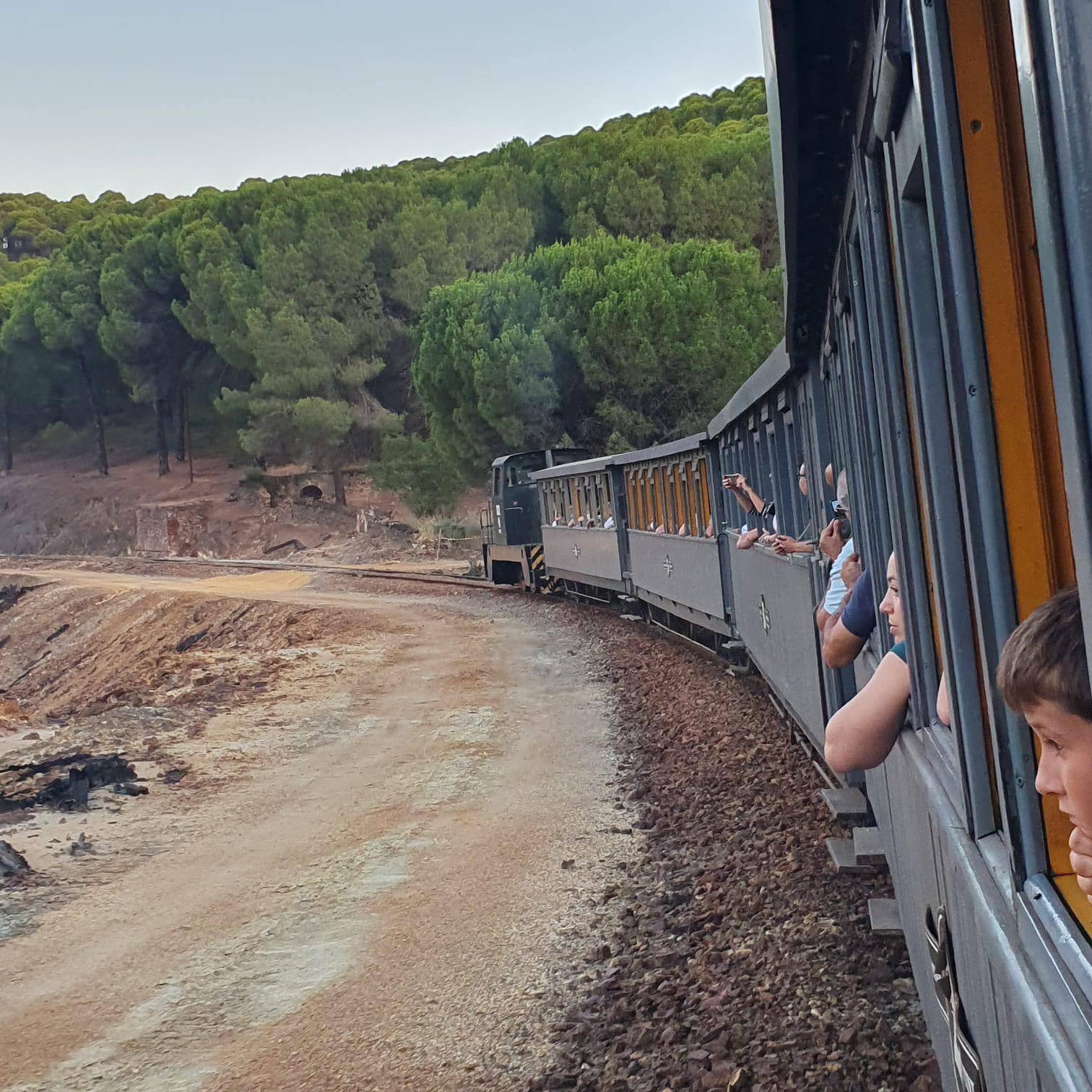 Und genau das, haben wir gestern Abend erlebt. Gute gelaunt fuhren wir zum Treffpunkt nach Minas de Rio Tinto, wo auch der Bahnhof ist. Die Zugskomposition, aus liebevoll restaurierten Wagons und einer Oldtimer Lokomotive, wartete bereits auf uns. Auf einer rund 30 minütigen Fahrt, wo wir tüchtig durchgeschüttelt wurden, erklärte der Guide uns alles Wissenswerte über diese Gegend und ihre einzigartige Geschichte.