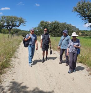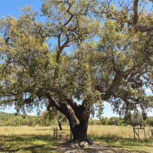 Am nächsten Morgen ein leckeres Frühstück auf dem Land in unserem sympathischen Hotel und dann ab in eine kleine Höhle, wo die Menschen vor über 20000 Jahren Malereien und Kratzbilder hinterlassen haben. Nicht gross, aber trotzdem eindrücklich, wenn man sich die Zeitspanne vor Augen hält. Fotos zu machen war zwar verboten – aber wenn man nicht erwischt wird… 😁 Danach gingen wir uralte Monolithen bewundern. Ein ganzes Feld mit 95 aufrecht stehenden Steinen. Nur unweit davon entfernt ein riesiger einzelner Stein. Beeindruckend und zugleich eine willkommene Gelegenheit eine kleine Wanderung zu unternehmen 🌞 Den Abend und die Nacht verbringen wir in Mértola, wo morgen das viertägige Islamische Festival mit einem grossen Markt beginnt. Das wollen wir uns ansehen. Übrigens: Heute konnten wir sehen, wie die Korkeichen geschält und danach mit einer Zahl versehen werden. Bei uns war es die 4. Das heisst, dass diese Bäume im Jahr 2024 geschält worden sind und nun 10 Jahre Regenerationszeit haben und erst wieder im Jahr 2034 für die erneute Korkgewinnung genutzt werden dürfen. Eine lange Zeit, in der der Baum seine gesamte Rinde wiederherstellen wird 🌳 Ein wunderbares Naturprodukt, welches man nur mit guter Behandlung nachhaltig gewinnen kann.
