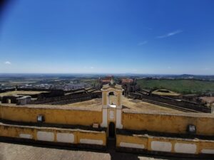 Wir sind unterwegs für 5 Tage in Portugal. Unser erster Tag im Alentejo Gebiet war geprägt von dem Besuch auf der riesigen, sternförmigen Festung Forte da Graca in Elvas. Absolut beeindruckend und noch bis ins Jahr 1975 als Gefängnis gebraucht. Zuvor trafen wir aber noch unsere Freunde, die schwarzen iberischen Schweinchen 🐽 Dann weiter zu einer geführten Korkeichen Wanderung, wo wir viel Wissenswertes zu diesem Baum erfahren haben. Mit nur 4 Teilnehmern geht das sehr gut 👍 Nun sind wir im Weingut und Hotel Torre de Palma und haben gerade ein wunderbares, leckeres Abendessen genossen. Das Leben kann so schön sein… 😁
