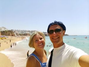 Doch es sind viele Menschen hier. Sehr viele… Unser Ding ist es nicht und so fuhren wir nach einer Stunde wieder zurück nach Tavira. Dort angekommen schlenderten wir nochmals ein wenig durch die Strassen. Was für ein Unterschied zu unserer Gegend. Es hat so viele, kleine Läden mit wunderschönen Dingen, wie zum Beispiel handgewobene (und preiswerte) Decken oder aber den bekannten Port Wein. Gerade eben haben wir für uns den Fine White Port Wine entdeckt, der sich zusammen mit Tonic Water, Eis und einem Zitronen Schnitz 🍋 zu einem absolut erfrischenden Sommer Apéro mixen lässt 🍹 Und das zu Preisen pro Flasche, die einfach nur unglaublich sind. Zum Abschluss unseres kleine Trips nach Portugal besuchten wir noch das grosse Shopping Center in Tavira, wo wir die Einkäufe für die kommenden Tage erledigten. Portugal liegt so nahe bei uns und ist doch so völlig anders. Für uns wirklich immer wieder einen Besuch wert.