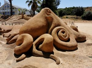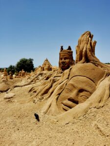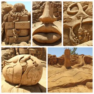 Es gibt über 60 professionelle Künstler, die an der Erstellung der Skulpturen arbeiten, und die Ausstellung erstreckt sich über 5 Hektar. Die Dauer einer Sandskulptur-Fertigstellung in Sand City, Portugal, hängt von der Größe und der Komplexität der Skulptur ab. Es kann zwischen einigen Stunden für kleinere, einfachere Werke bis zu mehreren Tagen oder sogar Wochen für grosse, detailreiche Skulpturen dauern. Eins ist sicher: Es braucht viel Geschick und Geduld um mit diesem Baustoff solche Kunstwerke zu fertigen.