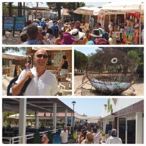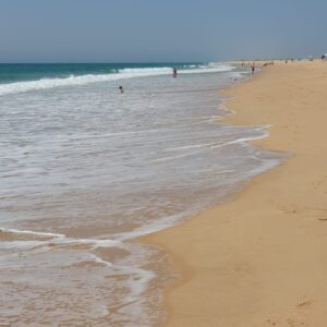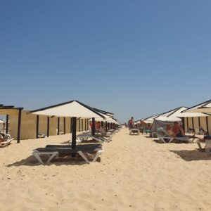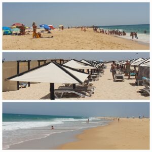 Am nächsten Tag besuchten wir die “Praias de Tavira” also die Strände von Tavira. Doch dazu muss man zuerst mit der Fähre übersetzen, denn diese Strände liegen auf einer langgezogenen Sandbank, die im Atlantik vor Tavira liegen. Eine circa 15 minütige Schifffahrt brachte uns dorthin. Hier erwartet einen das volle Angebot für den Touristen: Restaurants und Bars aller Couleur, mit einem riesigen Angebot. Cool gemacht und einladend. An den langen Sandstränden kann man sich alles mieten, was es für einen Tag am Meer braucht oder man wandert ein wenig Abseits, in ruhigere Abschnitte des langen Strandes.