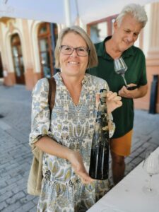Aber auch in vielen anderen umliegenden Weindörfern feiert man die Traubenernte und vor allem die guten Weine 🍇 So auch in Palma del Condado, wo wir am Wochenende zusammen mit Freunden auf dem grossen Platz vor der Kirche mit dabei waren. Man konnte sich ein kleines Büchlein mit Gutscheinen kaufen, da war ein schönes Weinglas mit einbegriffen und die Möglichkeit insgesamt fünf Weine zu degustieren. Viele Spezialitäten wurden angeboten, nebst dem “Vino de Naranja” (Orangenwein) oder dem “Vermut” (kräftig und kräuterig) auch ein Wein, der einige Monate in neun Metern Tiefe im nahe gelegenen Atlantik reifen konnte. Die Flasche war von Muscheln besetzt und hatte einen ganz eigenen Geschmack. Nur schon die Idee ist genial…