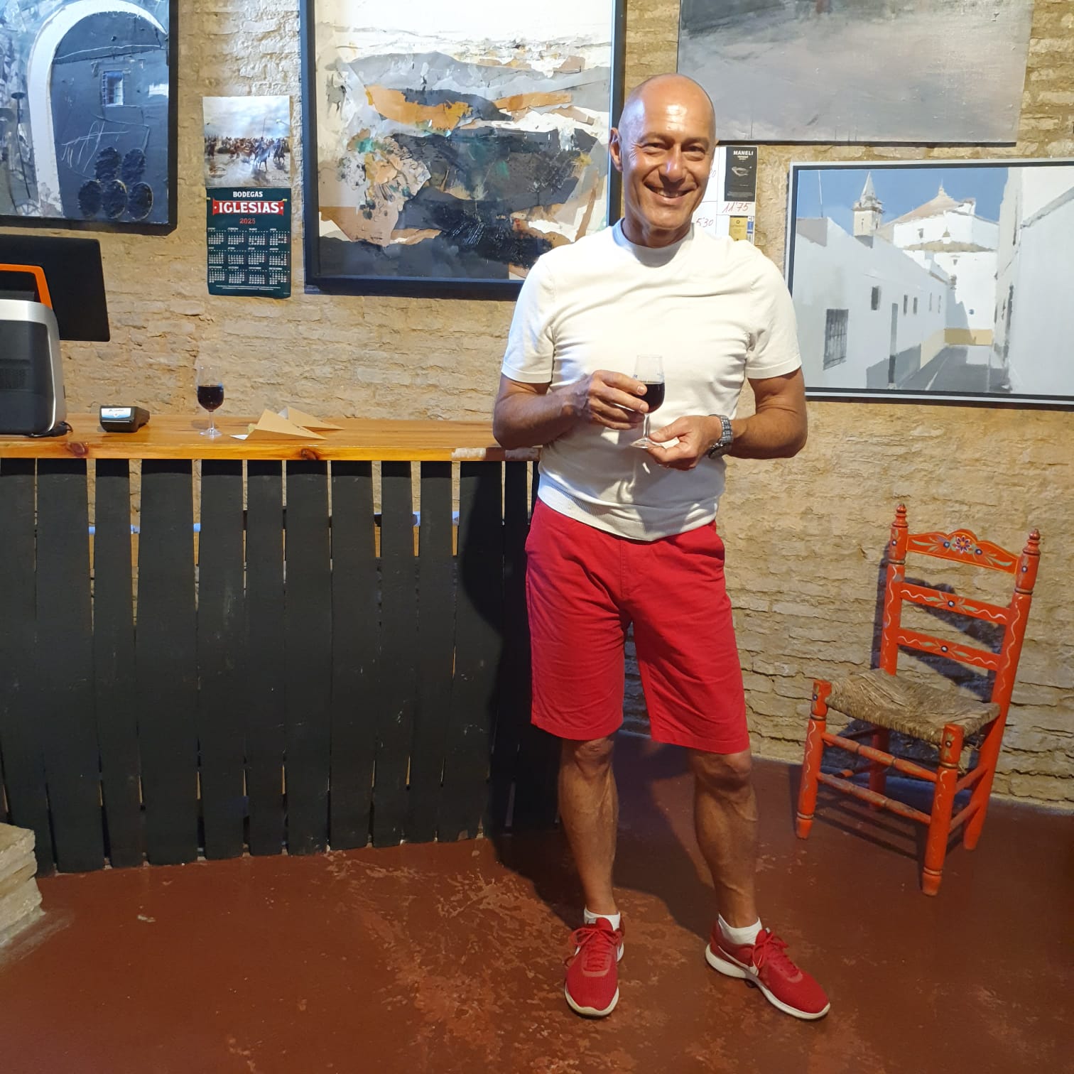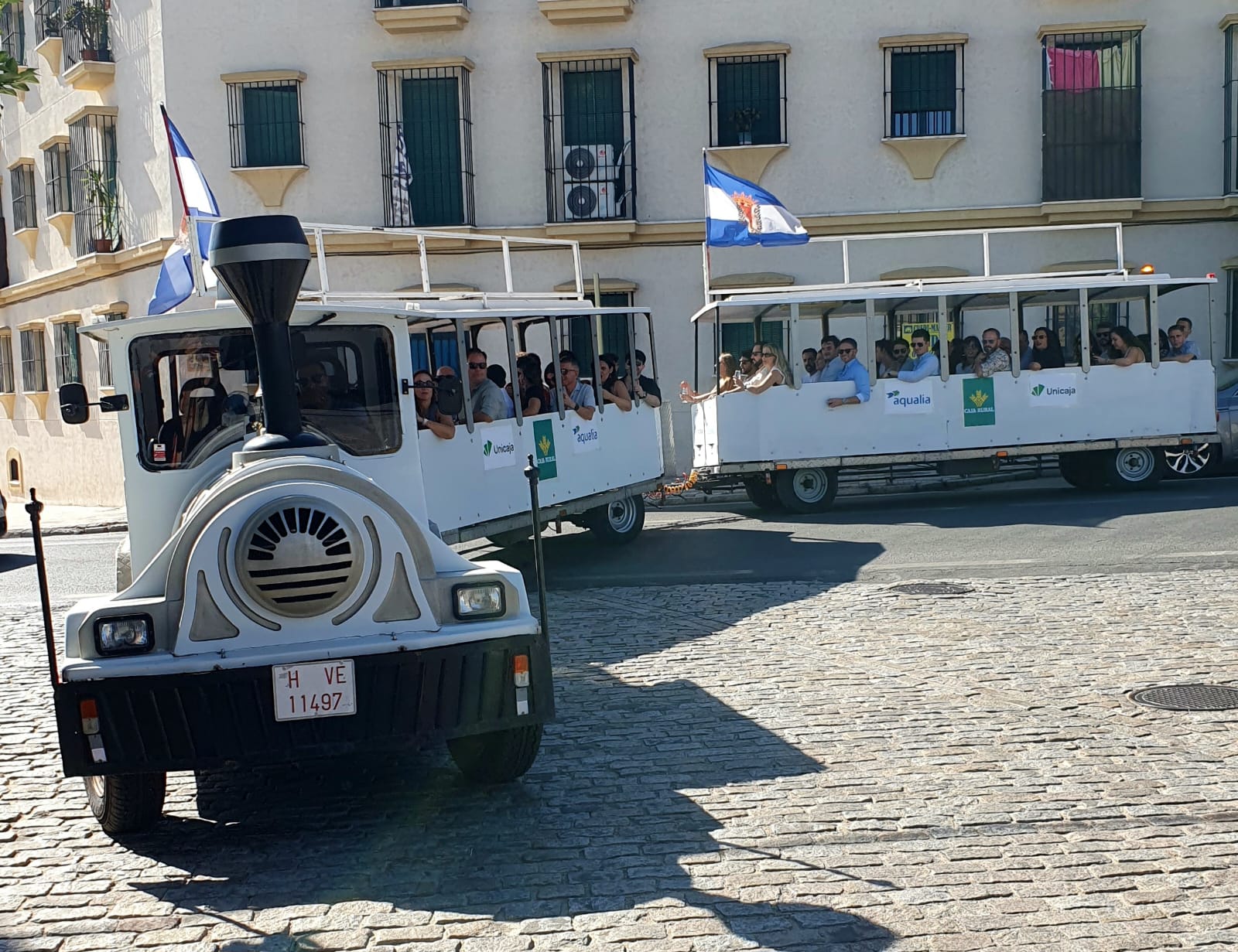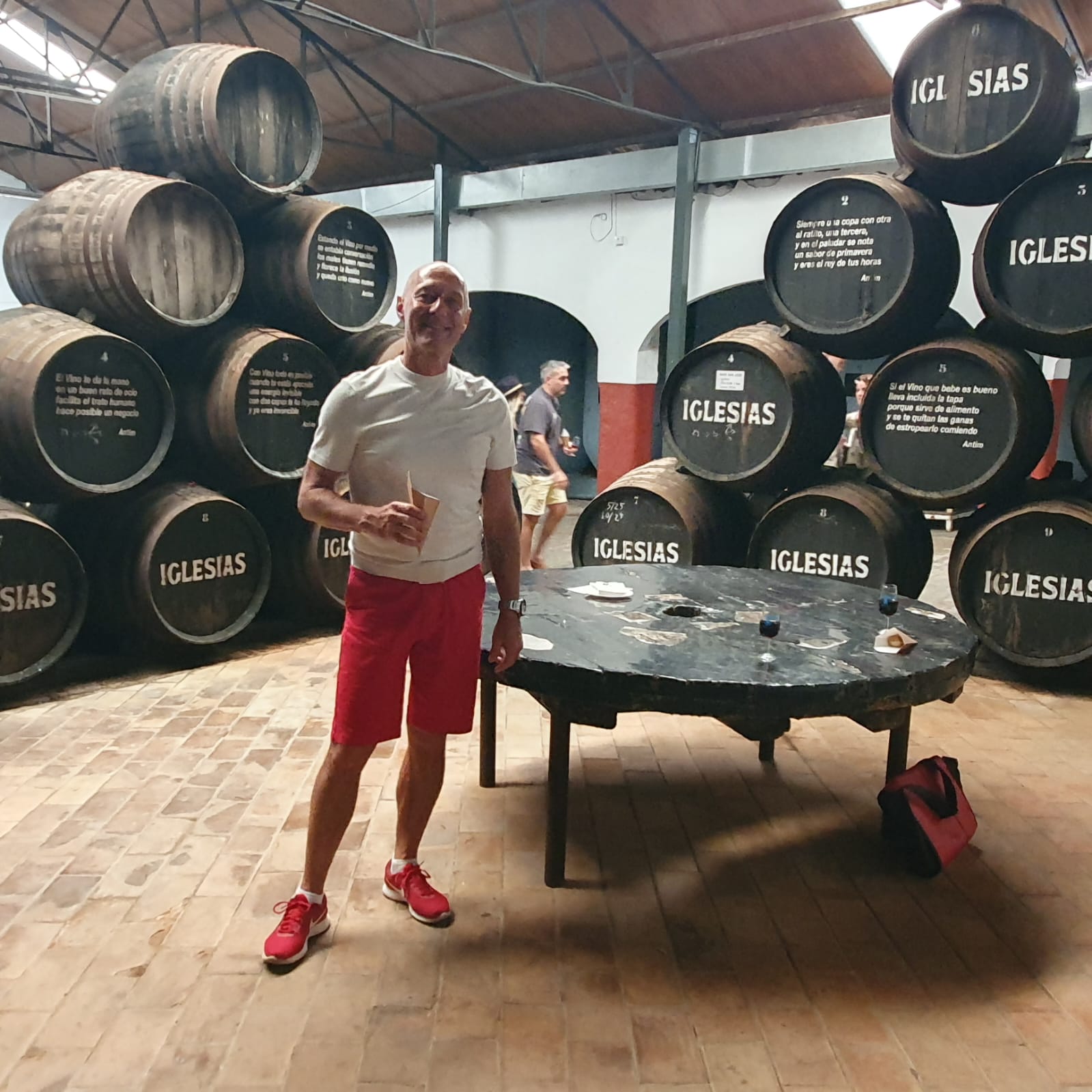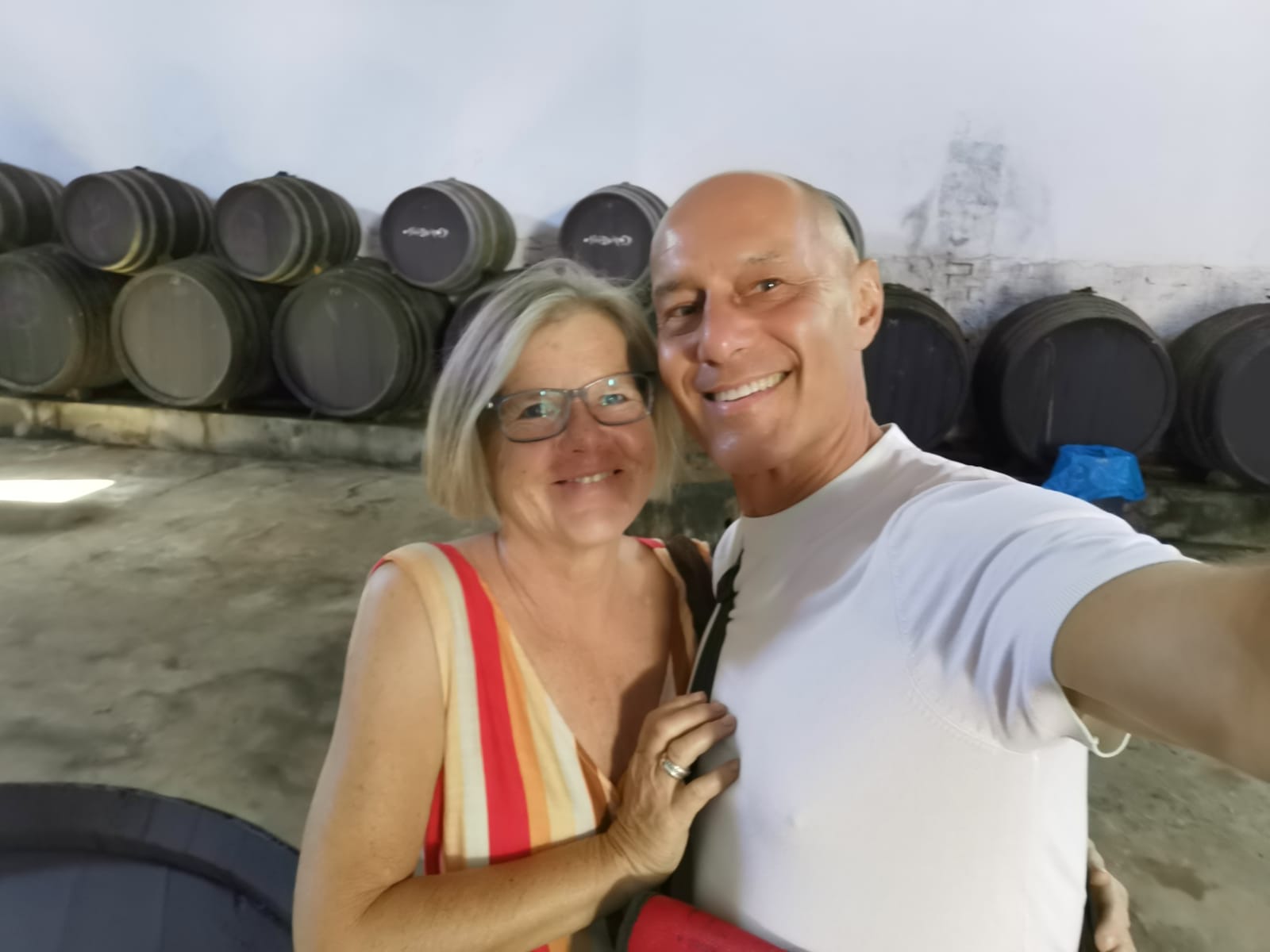 Wenn es in der Schweiz bei einer Degustation meistens nicht mehr als ein “feuchtes” Glas gibt, so wurde hier in Bollullos nicht gespart – und auch noch nachgefüllt 🍷Es war eine buntgemischte, gut gelaunte Besucherschar mit dabei und wir wurden mit dem kleinen Touristenzug von einer Bodega zur anderen gefahren. Die Stimmung wurde mit jeder Fahrt ausgelassener. Es wurde viel geschwatzt und gelacht.