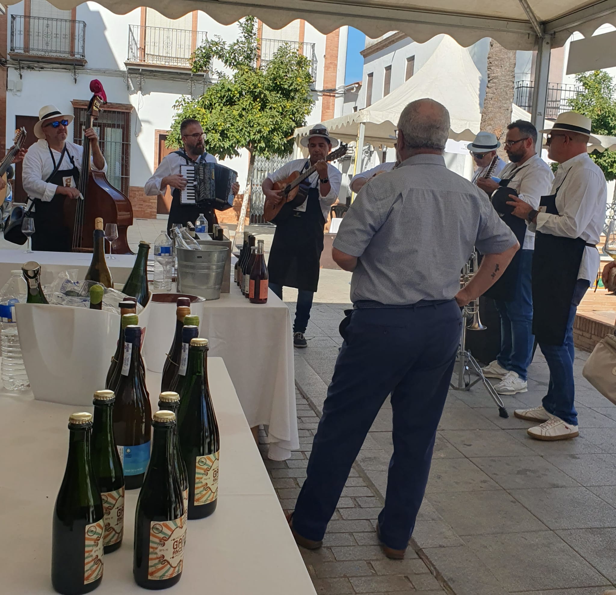Auch in diesem Jahr waren wir wieder in Bollullos par del Condado zu Besuch, einem Ort nahe Huelva, welcher eine lange Weinkultur hat. Es gibt dort zahlreiche Bodegas und sie sind stolz auf ihre Weine. Jedes Jahr feiert diese kleine Stadt eine Woche lang den lokalen Wein mit vielen Anlässen. An diesem Samstag absolvierten wir die “Ruta del vino” und so besuchten wir sechs ganz unterschiedliche Bodegas. Jedes Mal wurde eine andere Weinspezialität, zusammen mit einem leckeren Tapas Gericht angeboten.