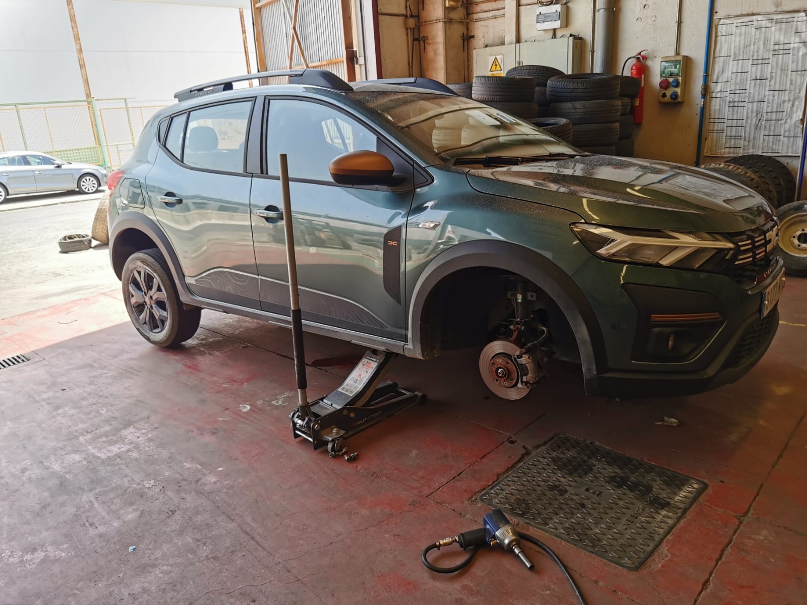 Alle 2 – 3 Tage wurde uns auf dem Fahrerdisplay angezeigt, dass wir den Reifendruck prüfen und entsprechend nachpumpen müssten. Das kann nicht normal sein und es zeigte sich, dass es immer wieder der vordere, linke Pneu war, der bis zu einem Bar Druck verloren hatte in der kurzen Zeit. Als ich heute in der SYRSA Garage war, haben sie das Auto hochgehebelt und den Reifen gründlich überprüft. Tatsächlich eine kleine Stelle war undicht.