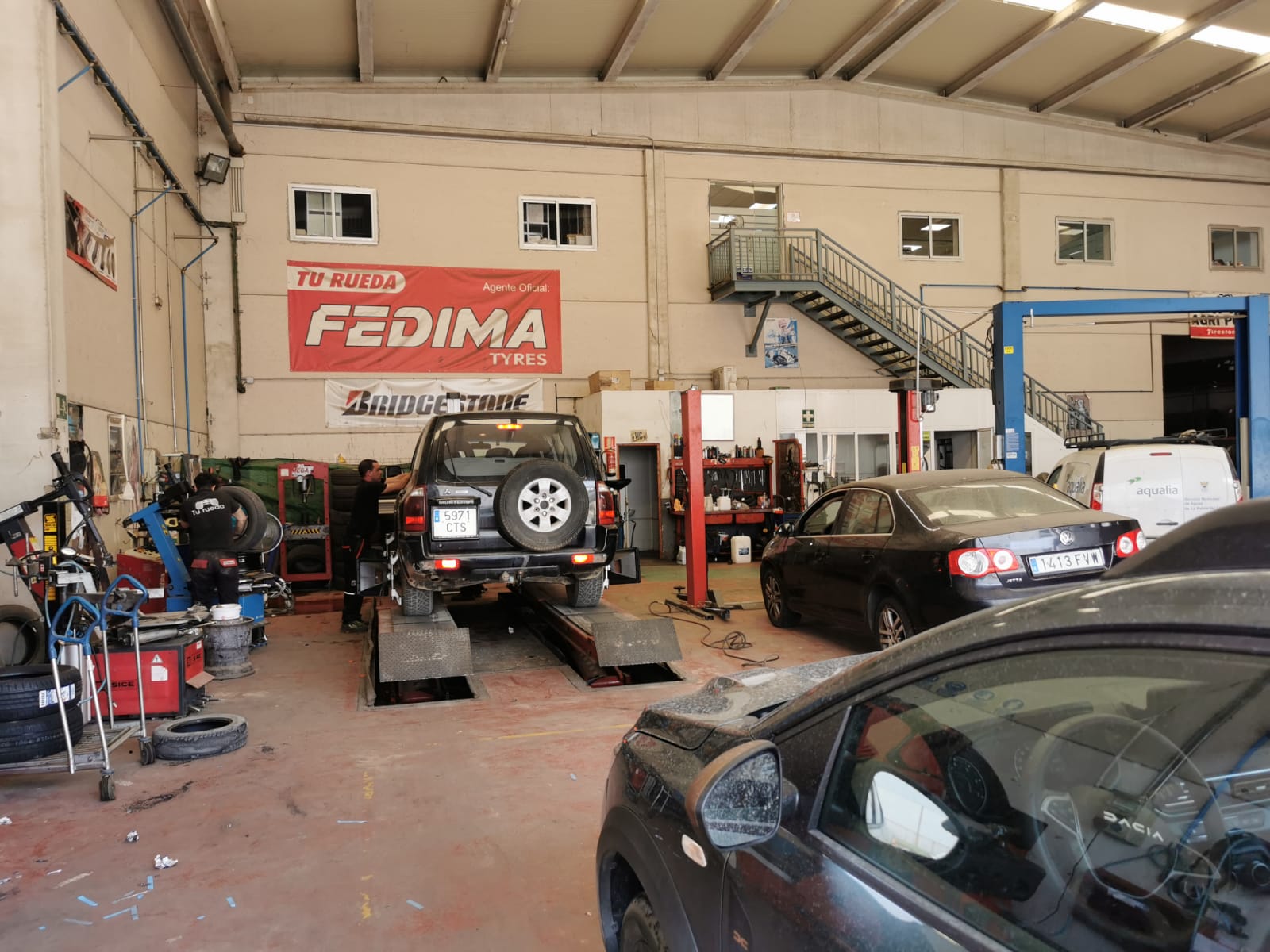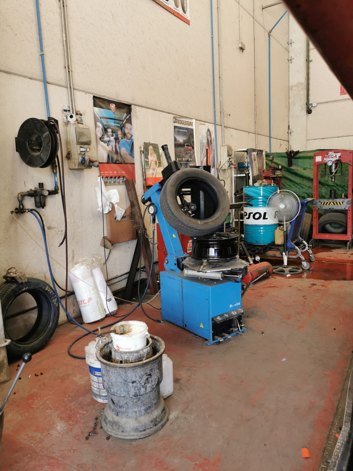 Dann hat mich Miguel (unser freundliche Garagist) zu einem anderen Ort, ebenfalls in Bollullos, geschickt: “Tu Rueda” (was so viel heisst, wie “Dein Rad”). Als ich dort angekommen bin, musste ich mich zuerst einmal zurechtfinden. Das war eine reine Reifenwerkstatt in einer riesigen Halle. Genau so, wie man sich so eine Werkstatt von früher vorgestellt hat. Einige Poster mit nackten Frauen hingen an den Wänden, Stapel von Pneus standen herum, Lärm und lautes Rufen und einige stämmige Männer waren an allen möglichen Fahrzeugen daran, die Reifen zu kontrollieren, wechseln, flicken.