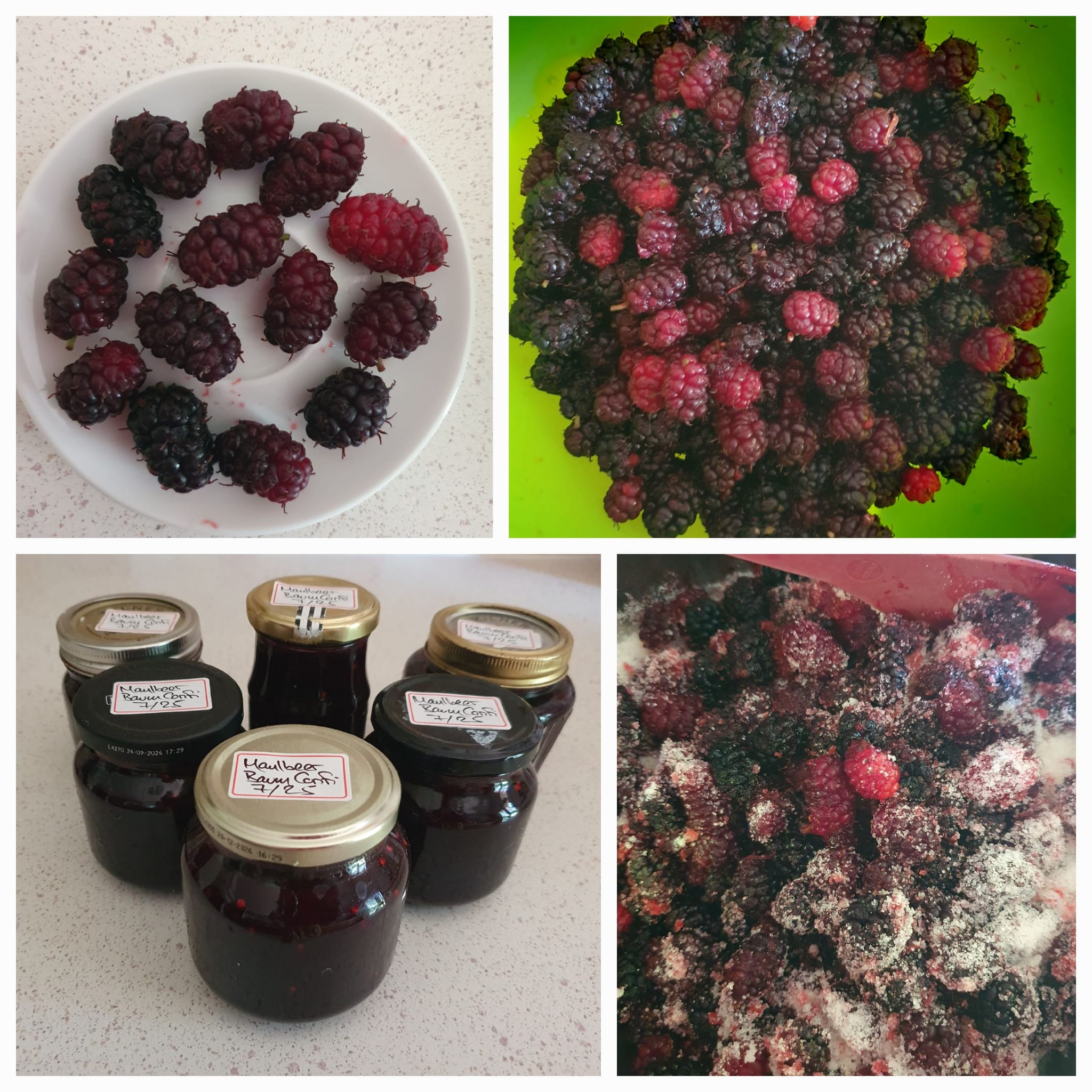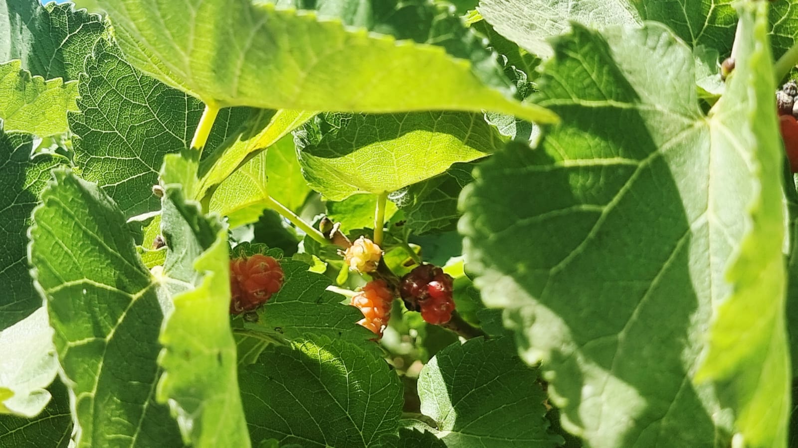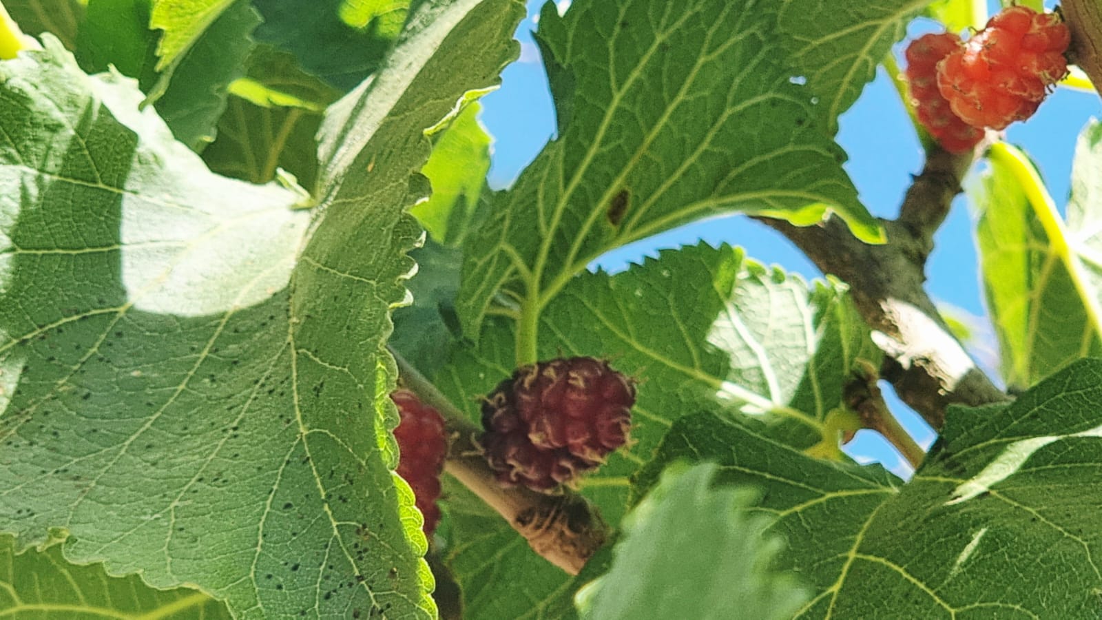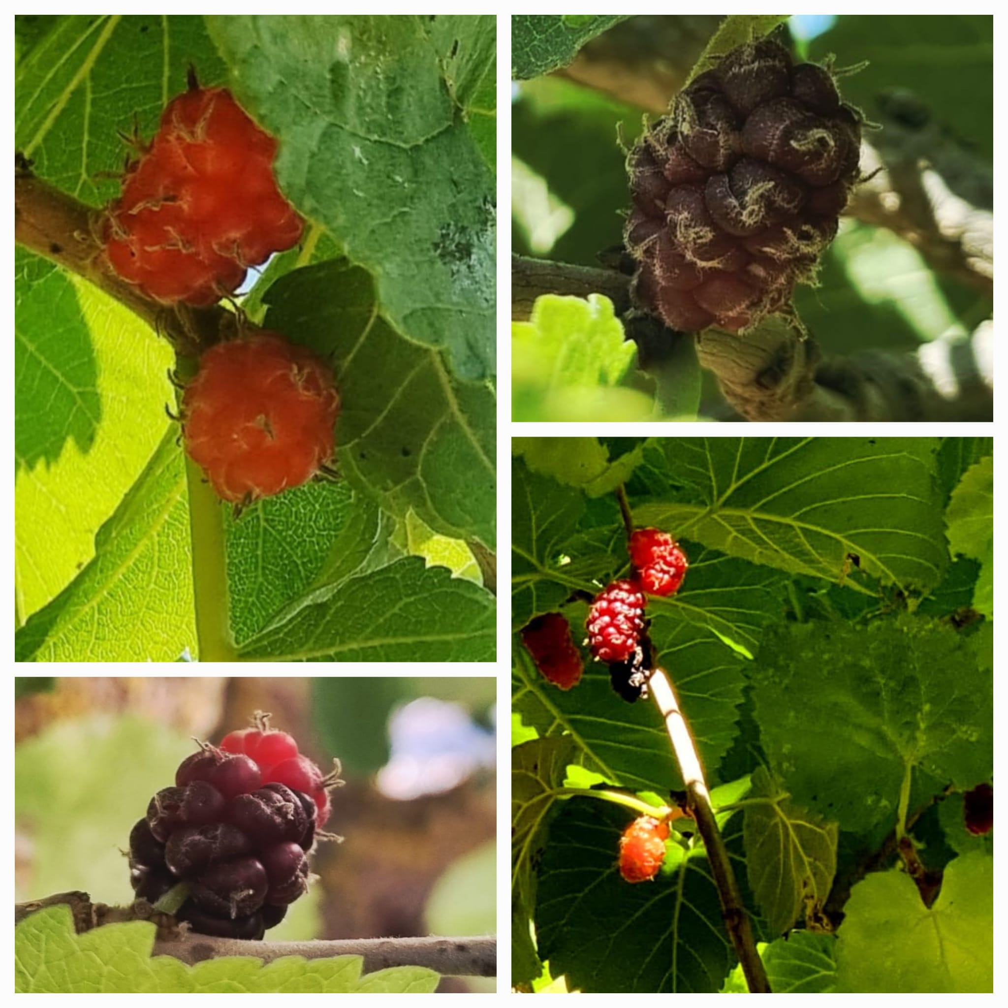 Wer kennt den Maulbeerbaum? 🤔 Ich kannte ihn jedenfalls nicht. Aber er hat die süssesten Früchte, die man sich nur vorstellen kann: eben die Maulbeeren 👍 Es ist ein prächtiger Baum, mit einem dichten Ast-& Blattwerk und seine Früchte wachsen direkt auf den Ästen, beim Blattansatz. Sie sehen aus wie Brombeeren und haben eine äusserst zarte Haut, die sofort platzt, wenn man sie nur ein bisschen zu hart anfasst und der Saft färbt unerbittlich die Hände und Arme.
