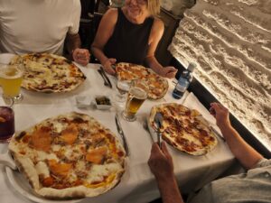 So entschieden wir uns kurzerhand, diesen Kulturkreis zu verlassen und uns kulinarisch wieder mehr nach Süden auszurichten. Kurzum, wir fuhren nach Sevilla und gingen zu einem unserer Lieblingsitaliener, wo es knusprige Pizza direkt aus dem Holzofen gibt. Wir bekamen auch tatsächlich beinahe augenblicklich einen schönen Vierertisch (keine Selbstverständlichkeit an einem Samstagabend um 22 Uhr) und genossen das leckere Essen und endlich auch die guten Gespräche.