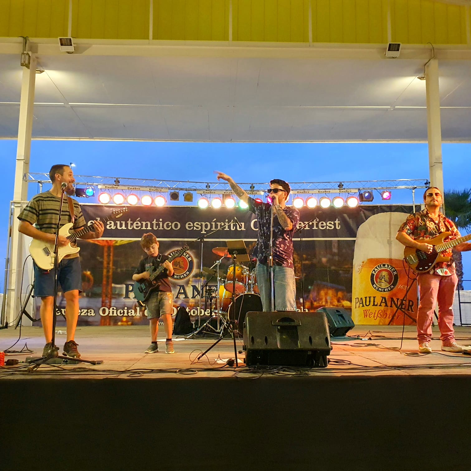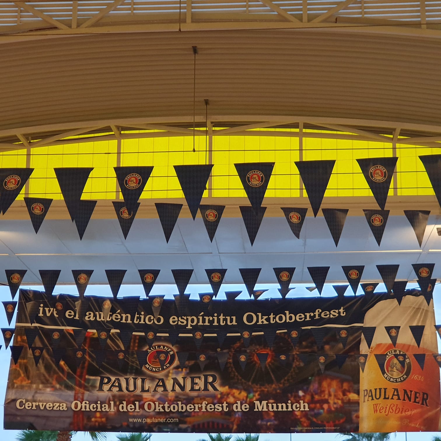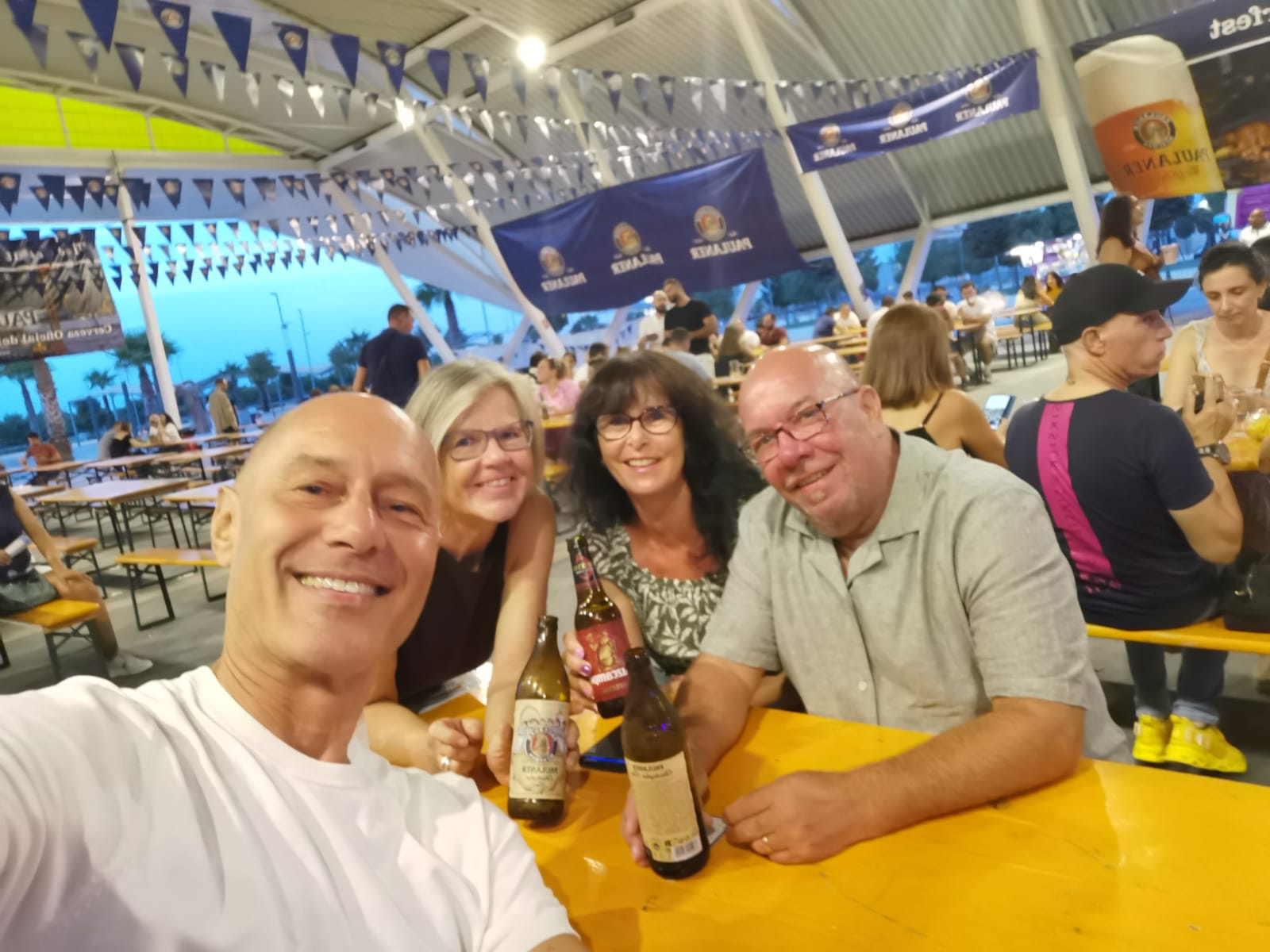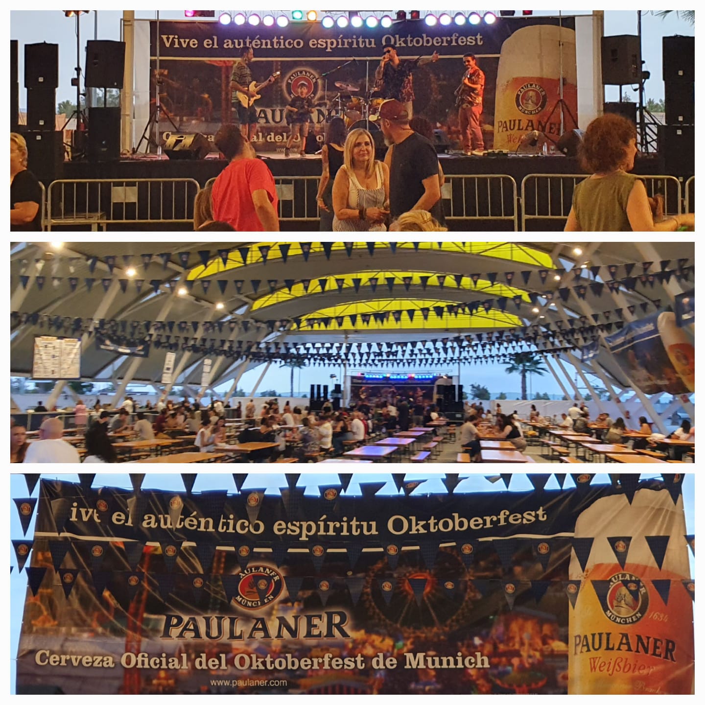 Schon nach dem Parkieren hörten wir die laute live Musik einer spanischen Band, wo sogar noch ein kleiner Junge an der E-Gitarre mit im Einsatz war. Festbänke standen aufgereiht und es waren bereits einige Besucher dort versammelt, die sich eines der diversen Biere (viele auch aus Deutschland) 🍺🍻 gönnten und die Zeit genossen. Es gab eine laaaaange Ausschanktheke und alles war gut organisiert. Doch die Laustärke der Musik verhinderte absolut jede Art von normaler Kommunikation. Man musste seine Bestellung seinem Gegenüber entgegenschreien oder – was besser funktionierte – mittels Deuten mit dem Finger verständlich machen. Der Ausschank funktionierte bestens, das Bier war wirklich lecker (besonders das Paulaner Spezialfestbier und das Weissbier), doch an ein gemütliches Zusammensein mit interessanten Gesprächen war nicht zu denken.