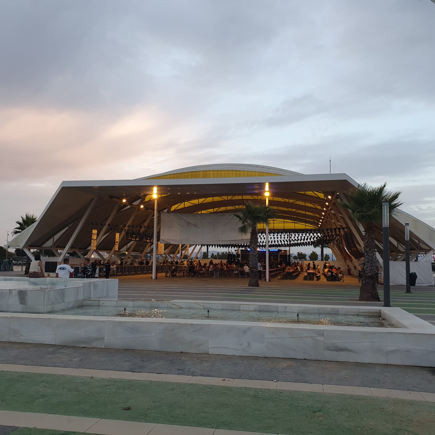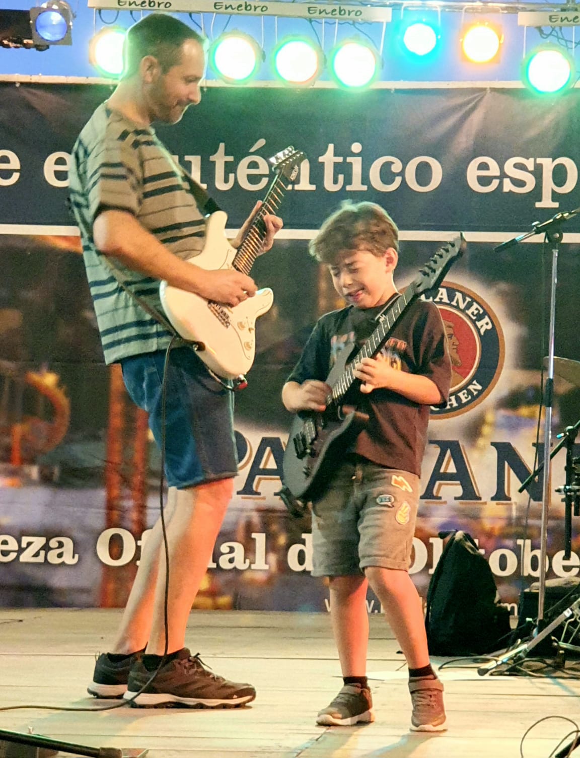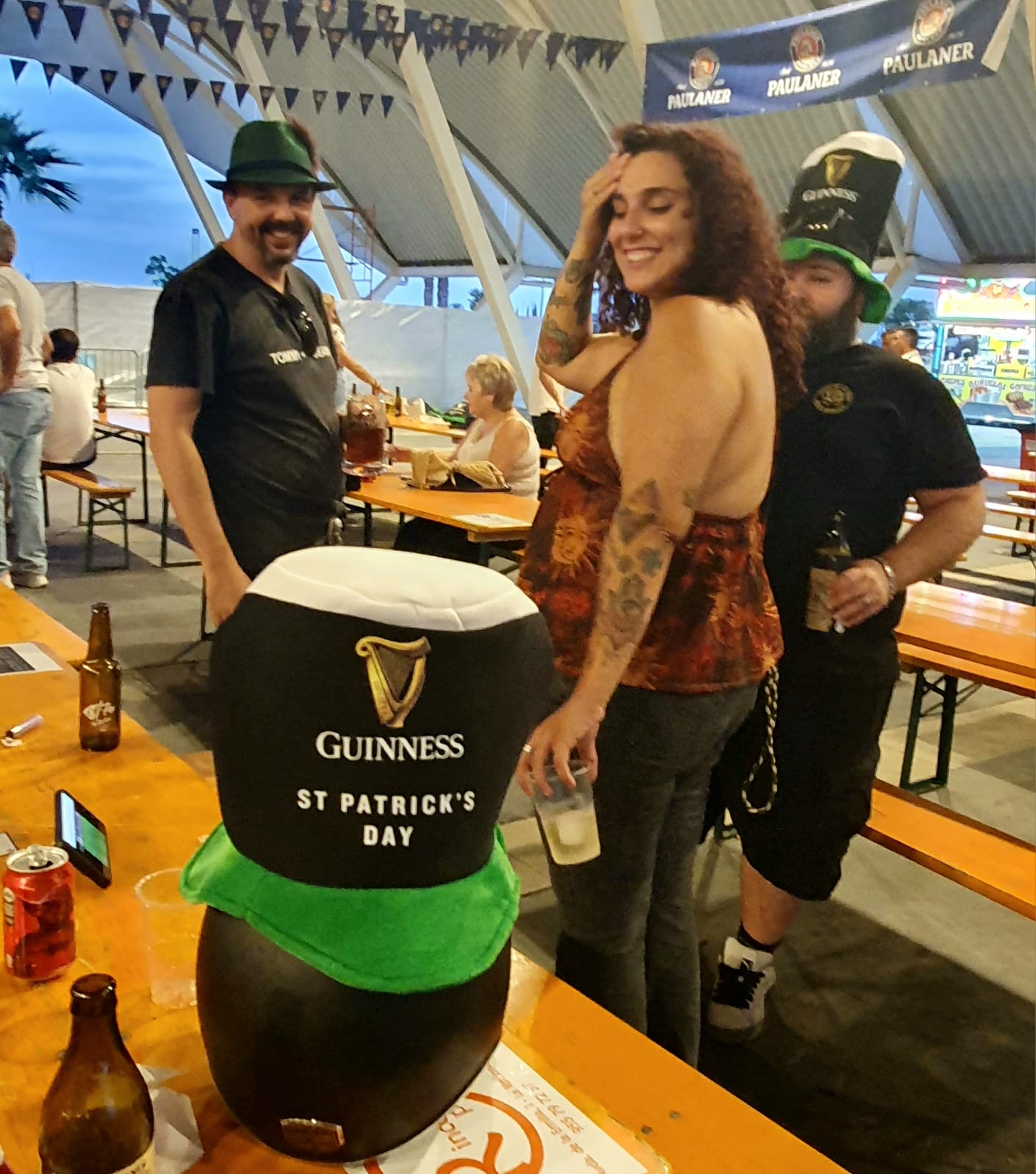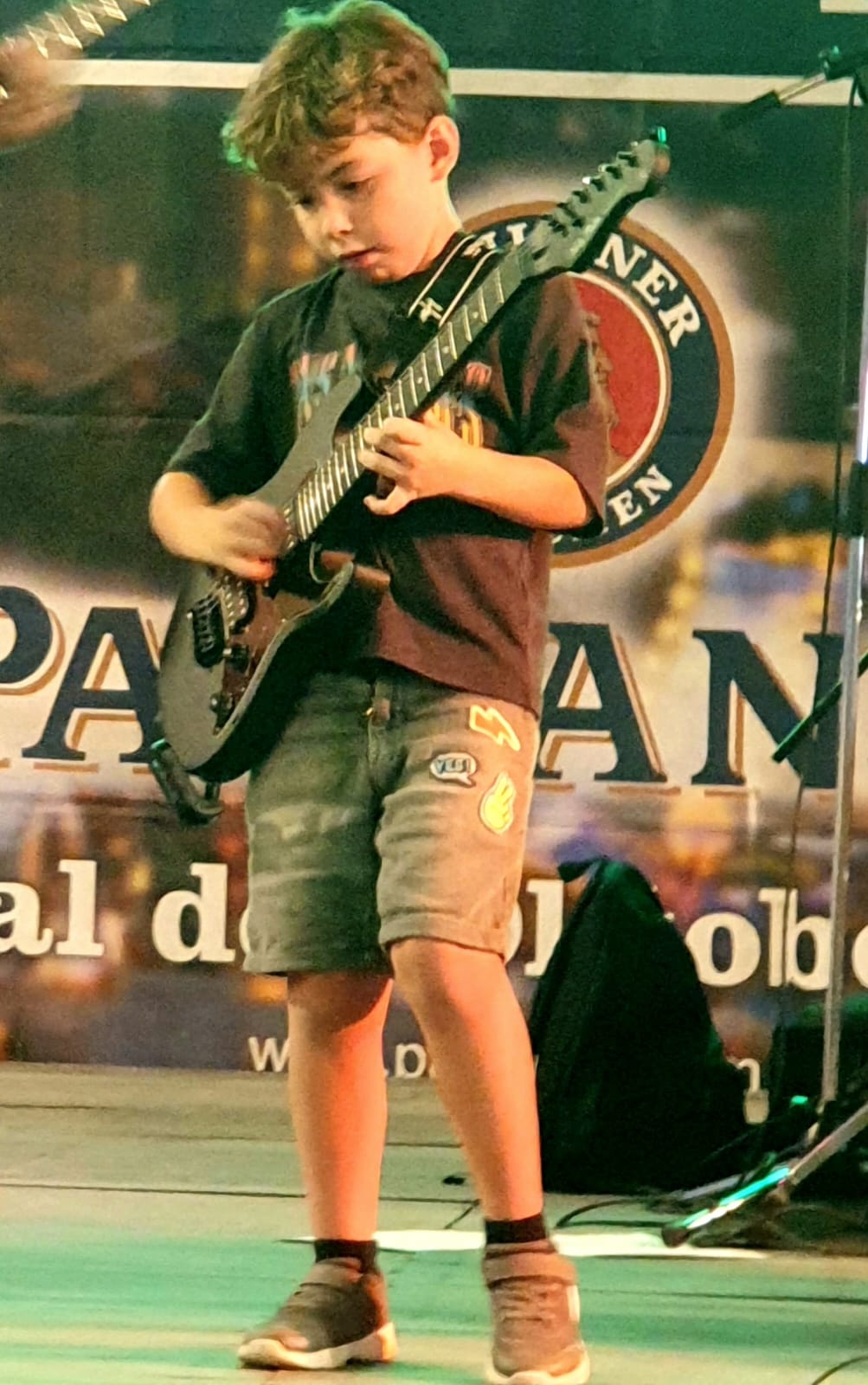 Schon nach dem Parkieren hörten wir die laute live Musik einer spanischen Band, wo sogar noch ein kleiner Junge an der E-Gitarre mit im Einsatz war. Festbänke standen aufgereiht und es waren bereits einige Besucher dort versammelt, die sich eines der diversen Biere (viele auch aus Deutschland) 🍺🍻 gönnten und die Zeit genossen. Es gab eine laaaaange Ausschanktheke und alles war gut organisiert. Doch die Laustärke der Musik verhinderte absolut jede Art von normaler Kommunikation. Man musste seine Bestellung seinem Gegenüber entgegenschreien oder – was besser funktionierte – mittels Deuten mit dem Finger verständlich machen. Der Ausschank funktionierte bestens, das Bier war wirklich lecker (besonders das Paulaner Spezialfestbier und das Weissbier), doch an ein gemütliches Zusammensein mit interessanten Gesprächen war nicht zu denken.