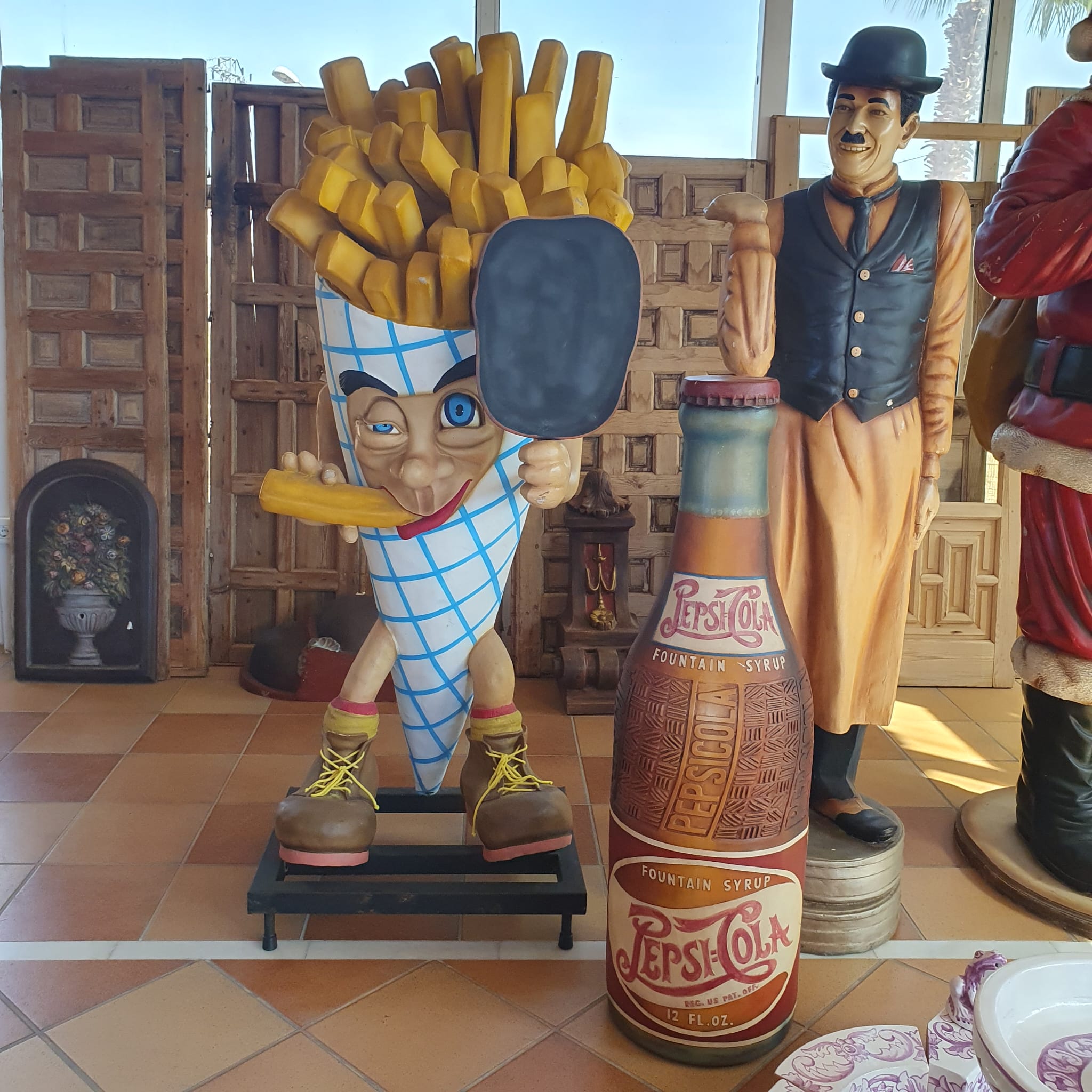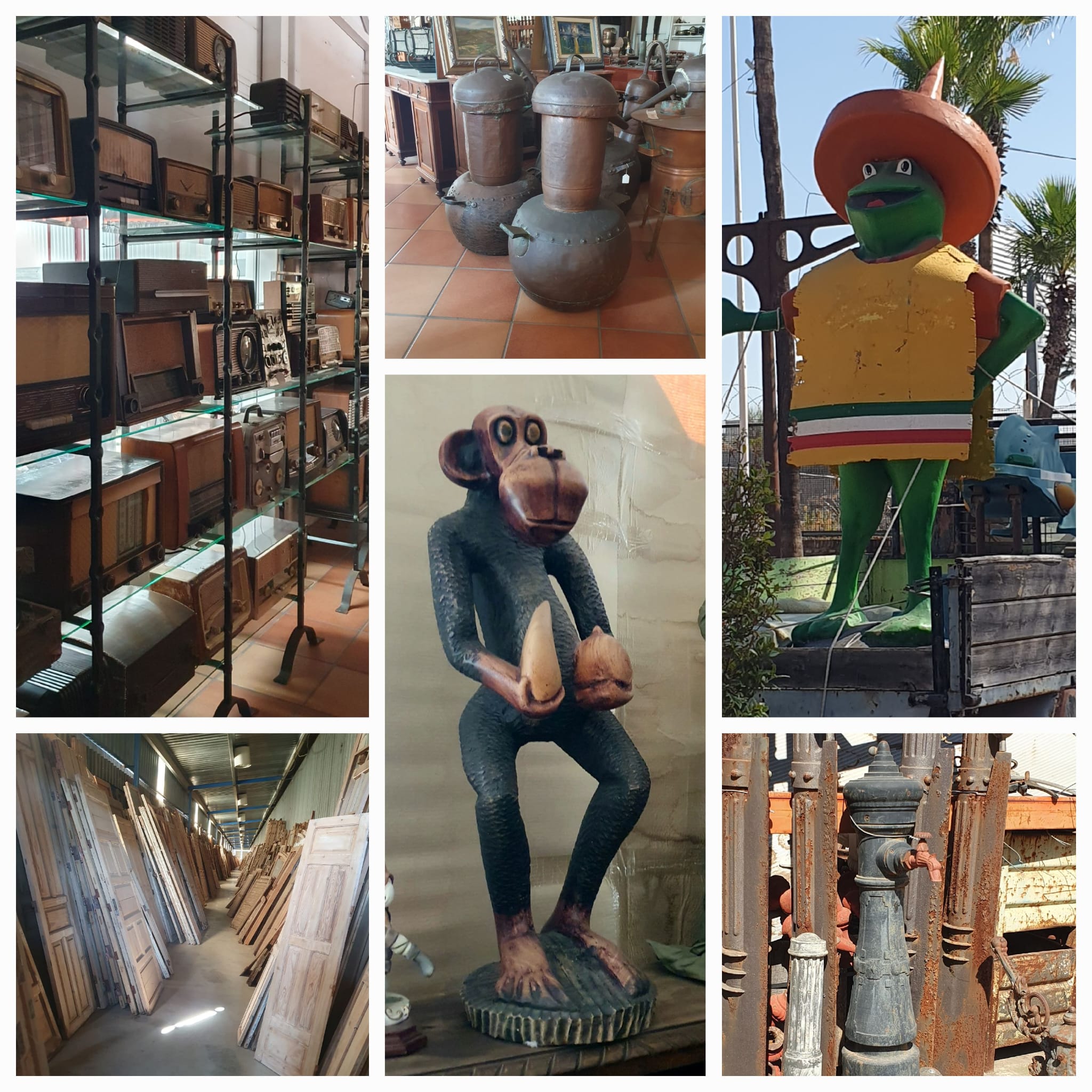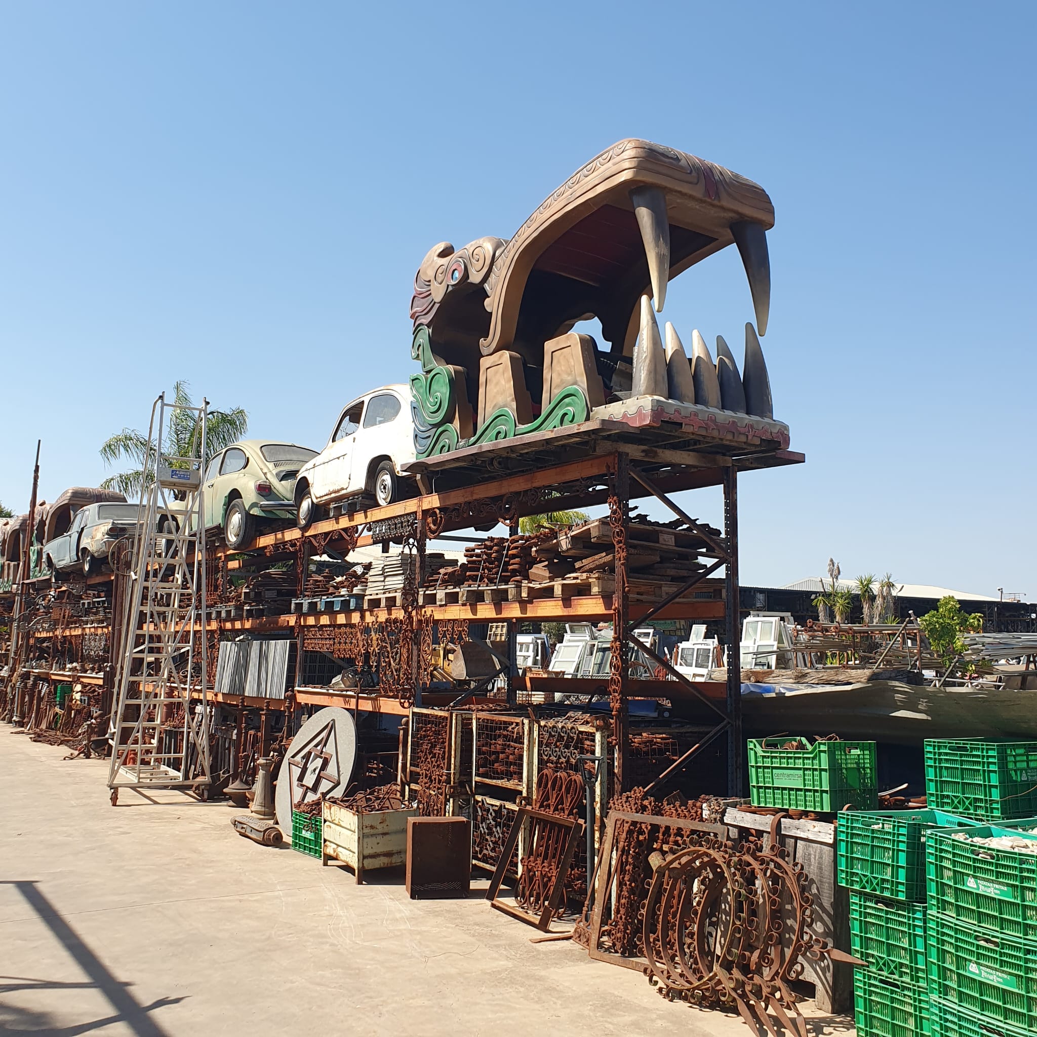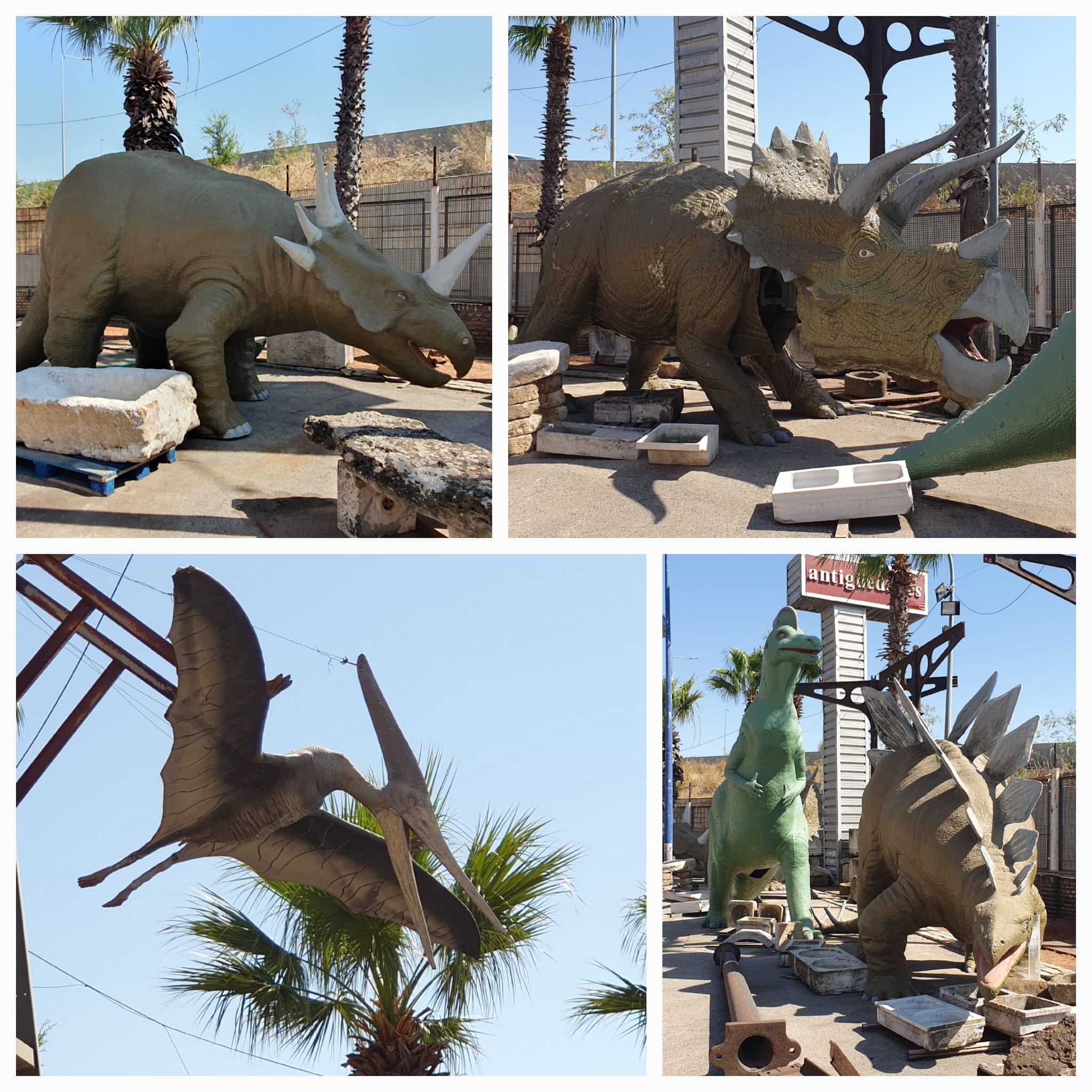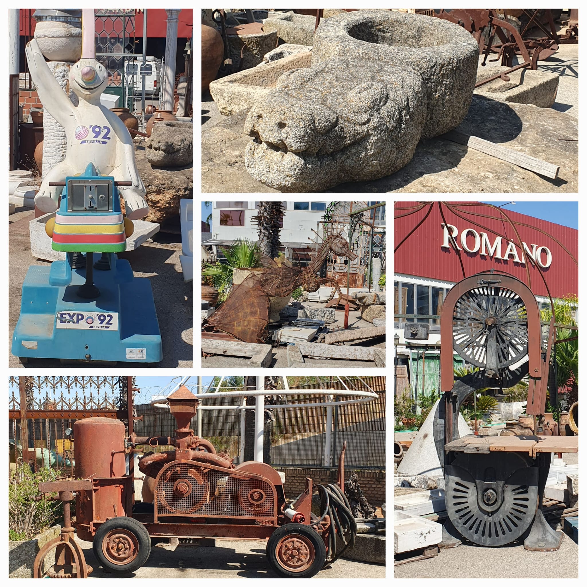 Heute besuchten wir zusammen mit Fredy, unserem Nachbarn und Freund, eine ganz besondere Antiquitätenausstellung auf insgesamt 30.000 m² Fläche: Romano Antigüedades, ganz in der Nähe von Sevilla, in Alcalá de Guadaíra. Riesige Dinosaurier, eine unüberschaubare Anzahl alter Türen und Tore (eine schöner als die andere), antike Maschinen und viele Objekte aus der Weltausstellung 1992 in Sevilla.