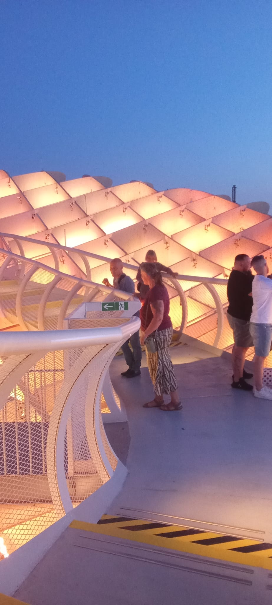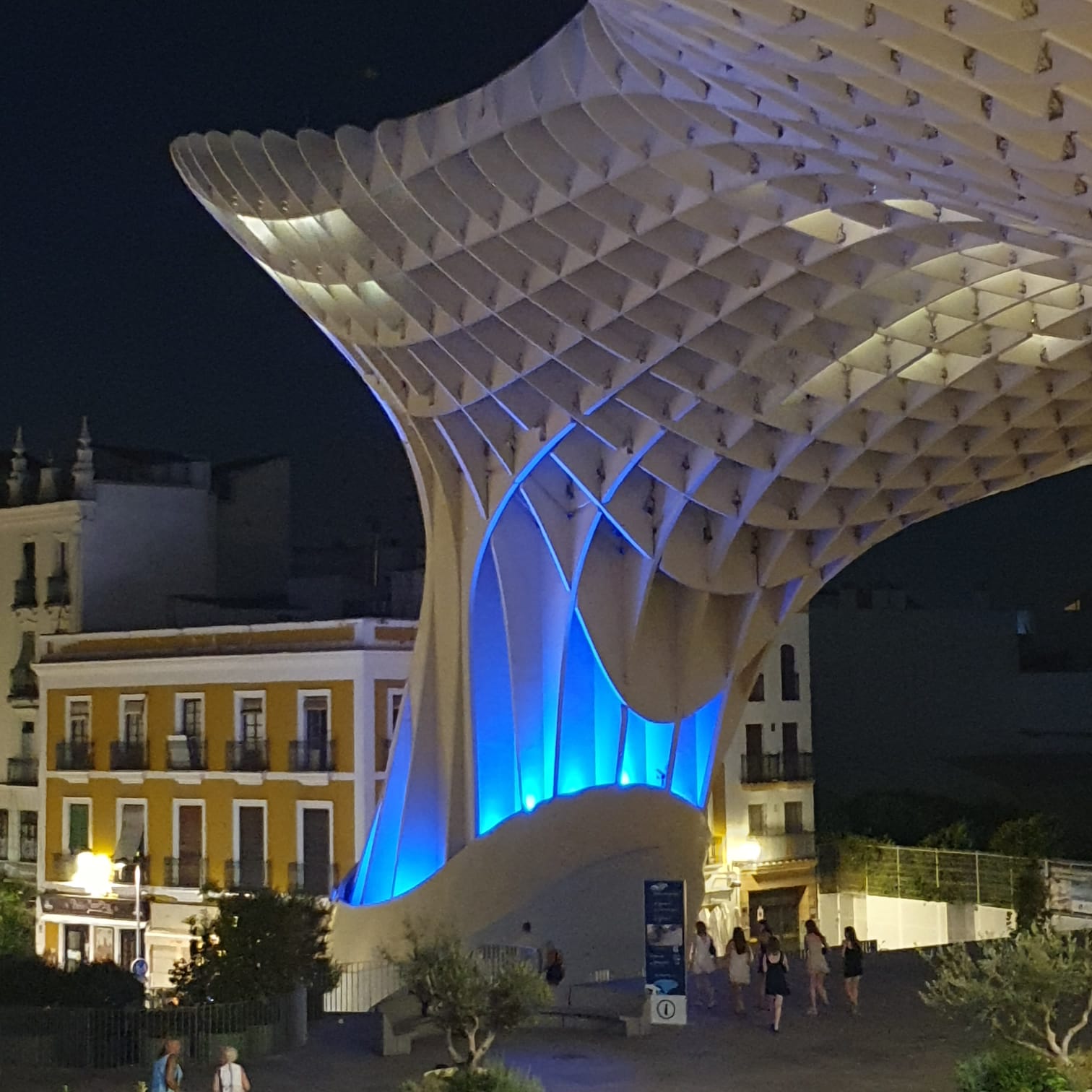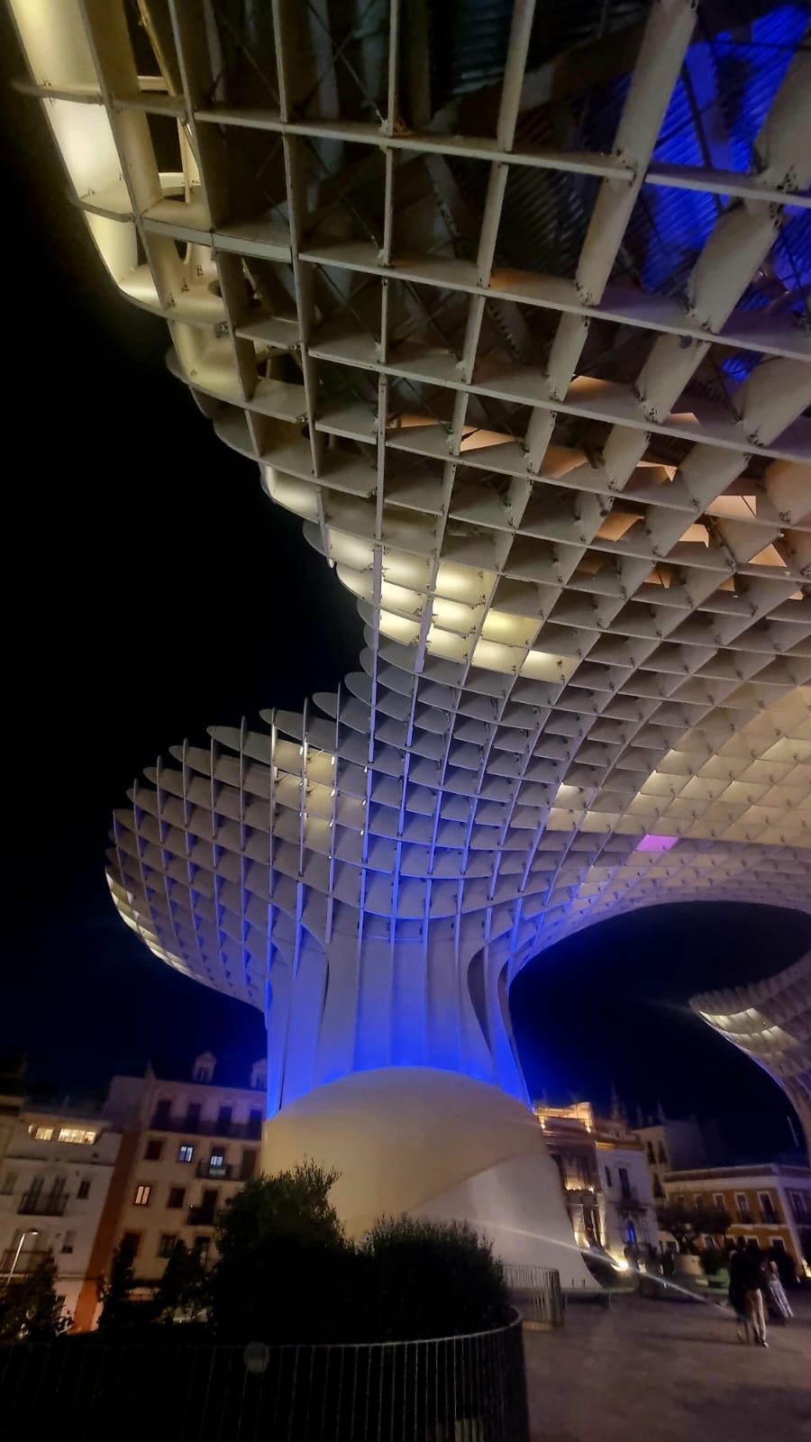 Gestern Abend waren wir wieder einmal zu viert unterwegs, denn wir hatten schliesslich etwas zu feiern: Den Geburtstag von Sabine 🥂🍹🍾🍸🎂 Also sind wir zuerst lecker essen gegangen bei unserem Lieblingsitaliener in Sevilla (“Maccheroni & Co” mit der absolut knusprigsten Pizza überhaupt 👍) und danach auf die Setas (Pilze), die eigentlich offiziell “Metropol Parasol” heissen. Diese skurrile Holzkonstruktion wurde in den Jahren 2005 – 2011 gebaut und ist bis zu 26 Meter hoch. Für Besucher der Stadt sicher ein Muss, aber auch die Sevillaner geniessen es, hier zu flanieren oder sich zu treffen. Es ist immer etwas los und die Setas sind wirklich direkt in ein Quartier “eingepflanzt” worden. Man sieht den Menschen in den umliegenden Häusern direkt in die gute Stube 🙄