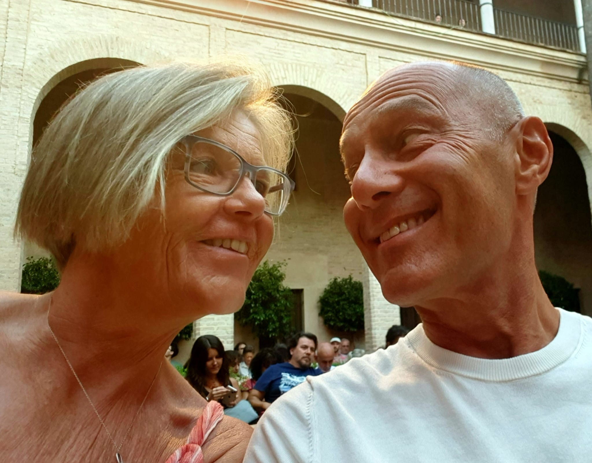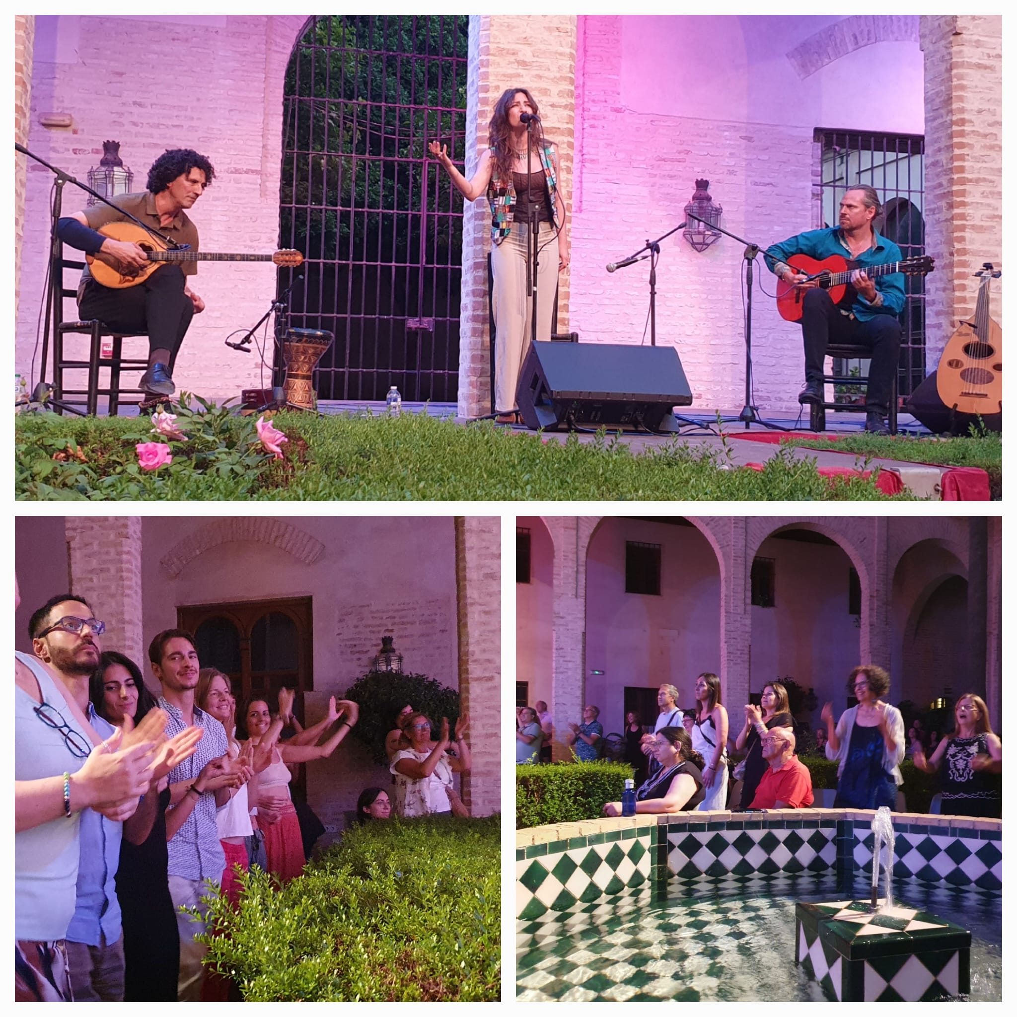 Drei Mal in der Woche. Doch das Beste daran ist: Es sind kostenfreie Konzerte. Doch wie kommt man an die Tickets ran? Man muss sich zu einer ganz bestimmten Zeit am Montag bei der entsprechenden Webpage einloggen und versuchen, eines der rund 200 Tickets zu ergattern. Dass dies nicht einfach ist, da diese Konzerte bei der Bevölkerung von Sevilla sehr beliebt sind, liegt auf der Hand. Dieses Mal hat es aber funktioniert und Esther konnte für uns zwei Plätze reservieren. Doch wir wussten eigentlich nicht, was für ein Konzert uns erwartet. Irgend etwas Orientalisches. Was wir aber dann geboten bekamen, hat uns absolut begeistert. Ein kleine, dreiköpfige Gruppe mit einer mitreissenden jungen Sängerin haben uns Lieder aus beiden Kulturen, der arabischen und der andalusischen, geboten und der Funke ist sichtlich auf das Publikum übergesprungen.
