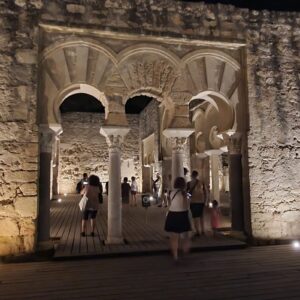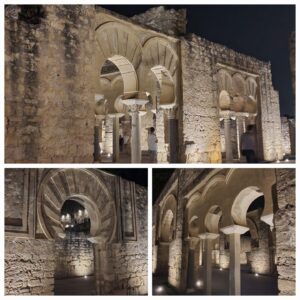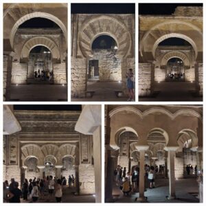 Das Highlight (im Dunkeln 😜) war aber dann der Besuch der antiken Kalifenstadt Madinat al-Zahra, eine mächtige Stadt, die gleich neben Cordoba im 9. Jahrhundert erbaut wurde und die prunkvoll über Cordoba am Berghang trohnte. Sie musste wundervoll ausgesehen haben und war auch bereits mit einem Kanalisationssystem und Frischwasserleitungen ausgestattet. Leider wurde sie nach rund 250 Jahren bereits wieder zerstört und spätere Generationen haben die Steine und andere Materialien aus den Ruinen für neue Bauten verwendet. Wir hatten ein zweistündige Führung gebucht – und waren nicht allein… 🙄 Es hatte richtig viele Menschen (allesamt Spanier) die diese Tour in verschiedenen Gruppen auch machten. Eindrücklich 👍