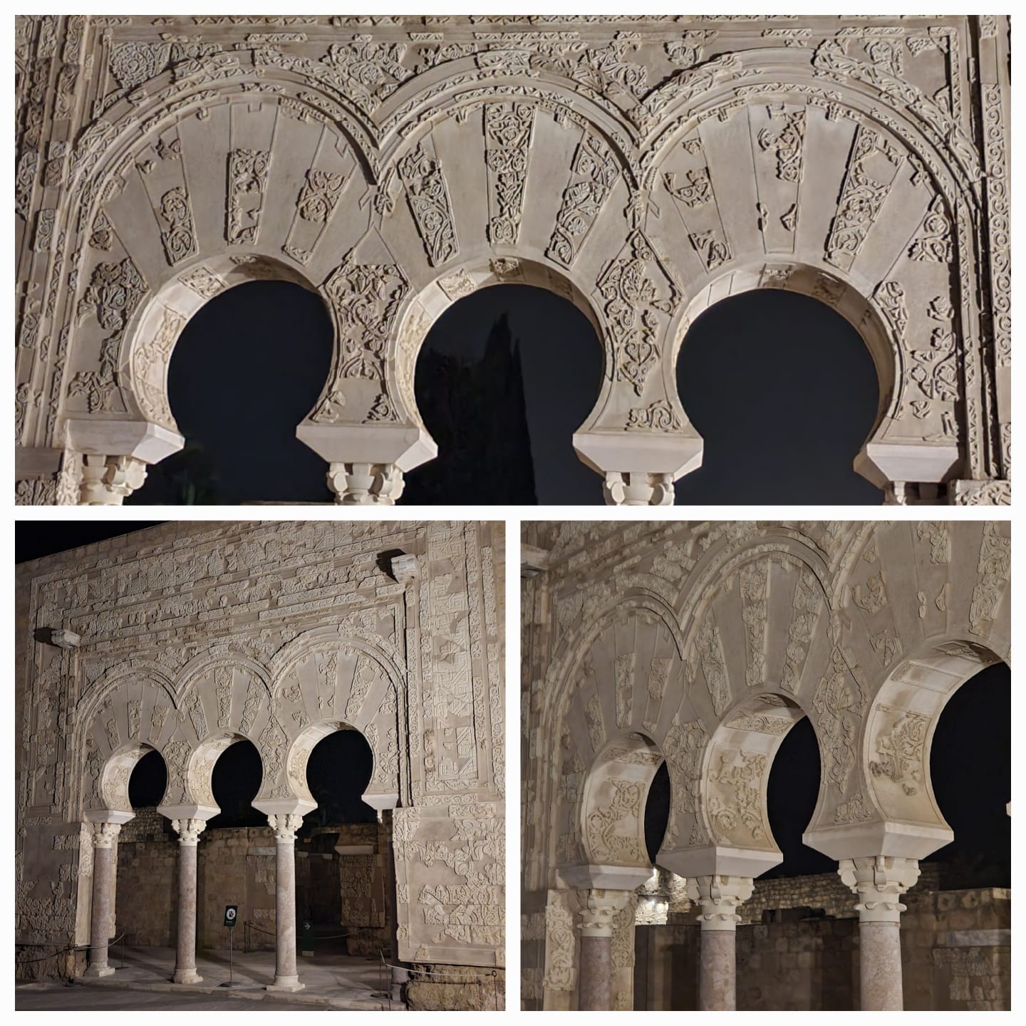Das Highlight (im Dunkeln 😜) war aber dann der Besuch der antiken Kalifenstadt Madinat al-Zahra, eine mächtige Stadt, die gleich neben Cordoba im 9. Jahrhundert erbaut wurde und die prunkvoll über Cordoba am Berghang trohnte. Sie musste wundervoll ausgesehen haben und war auch bereits mit einem Kanalisationssystem und Frischwasserleitungen ausgestattet. Leider wurde sie nach rund 250 Jahren bereits wieder zerstört und spätere Generationen haben die Steine und andere Materialien aus den Ruinen für neue Bauten verwendet. Wir hatten ein zweistündige Führung gebucht – und waren nicht allein… 🙄 Es hatte richtig viele Menschen (allesamt Spanier) die diese Tour in verschiedenen Gruppen auch machten. Eindrücklich 👍